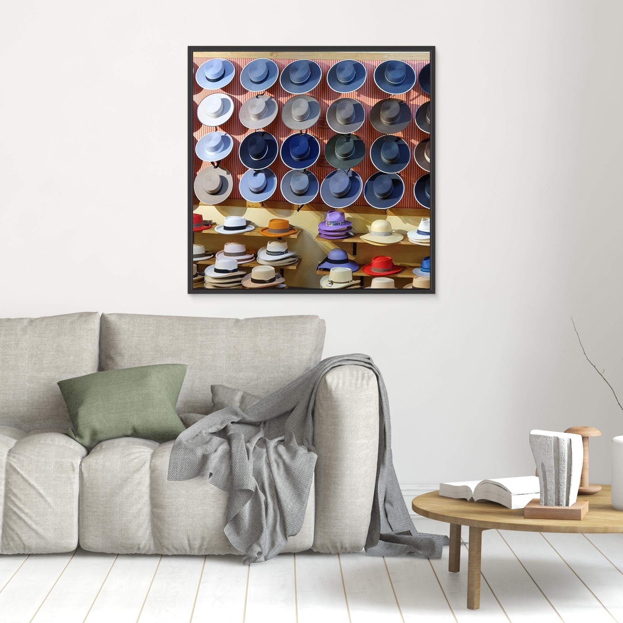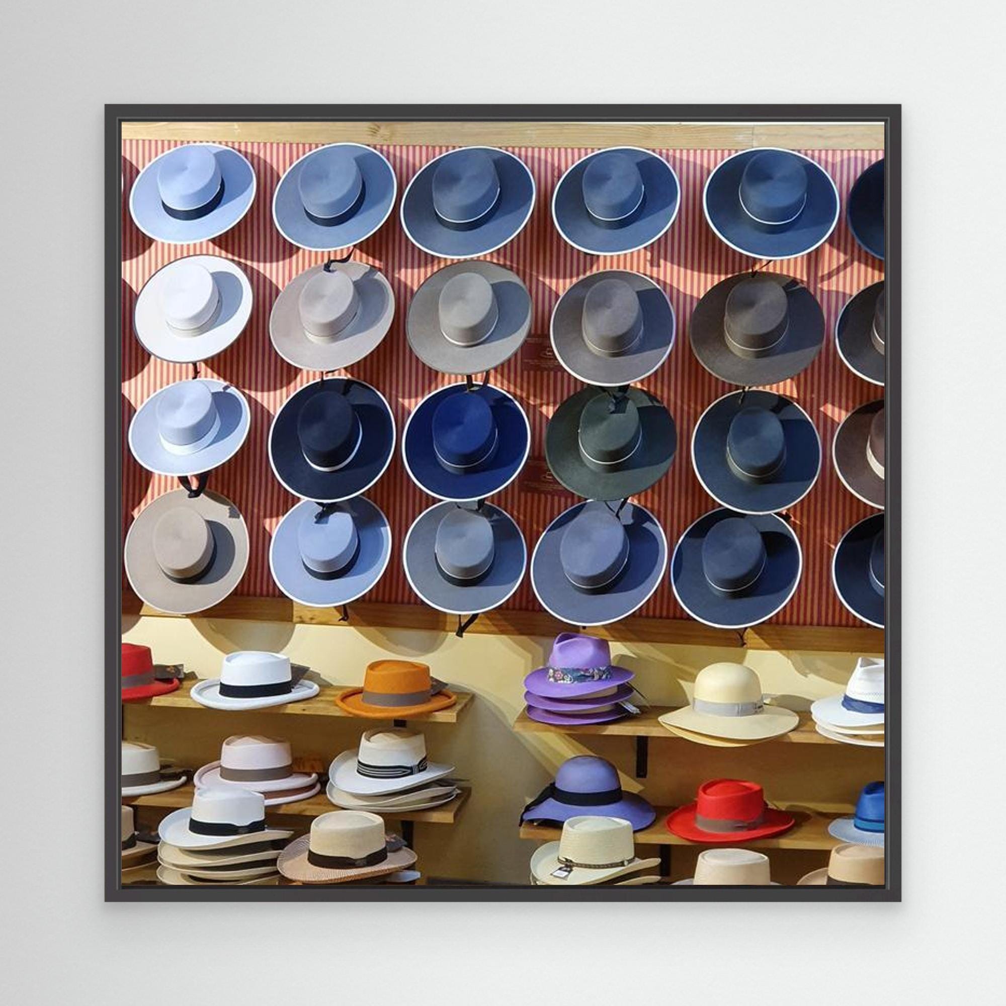 • Poly-cotton blend canvas with a matte/satin finish. Scratch, crack, and warp resistant. • Vibrant, long-lasting colors with water-based HP Latex inks and UV protection. • Solid wooden frame from renewable sources, 3.2 cm deep. This photograph captures a traditional shop in Seville, Andalusia, where rows of handcraftedhats form a rhythmic and colorful wall display. The repetition of shapes, subtle differences in tone, and warm Mediterranean light turn everyday craftsmanship into a graphic composition. Taken in southern Spain, this image balances travel photography, cultural heritage and decorative design. It works beautifully as wall art in a modern, eclectic, or Mediterranean interiors. Printed on high quality canvas and ready to hang, this piece brings warmth, rythm, and quiet character to any space.