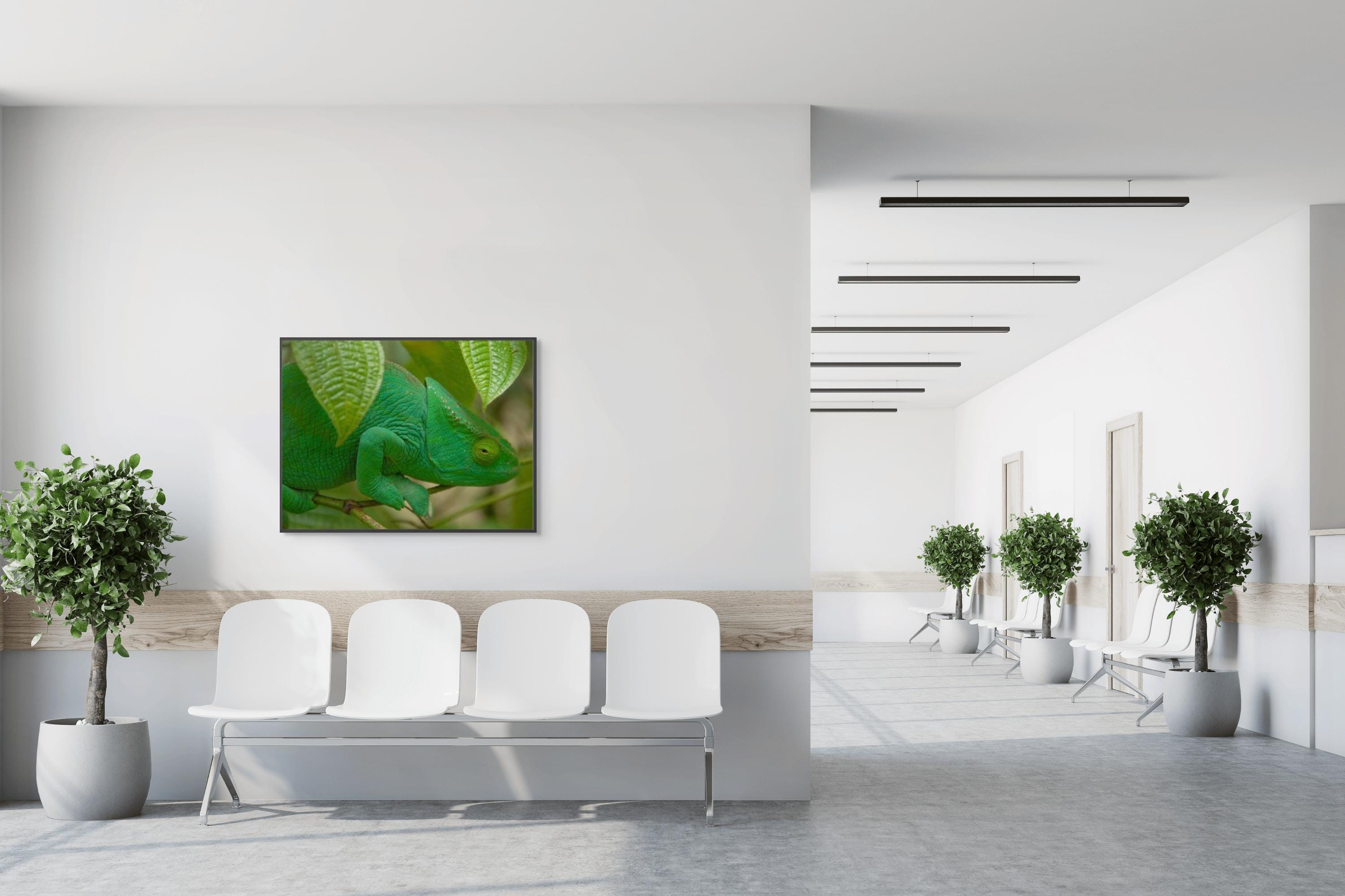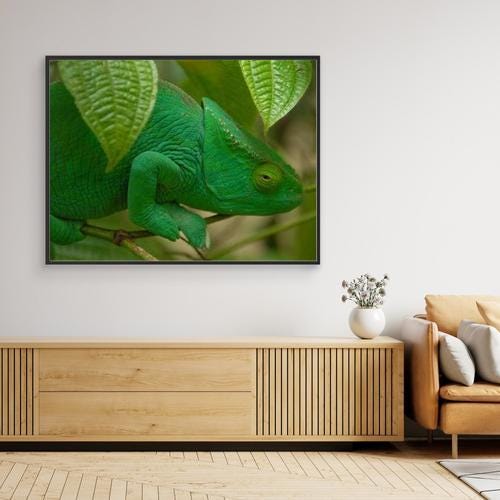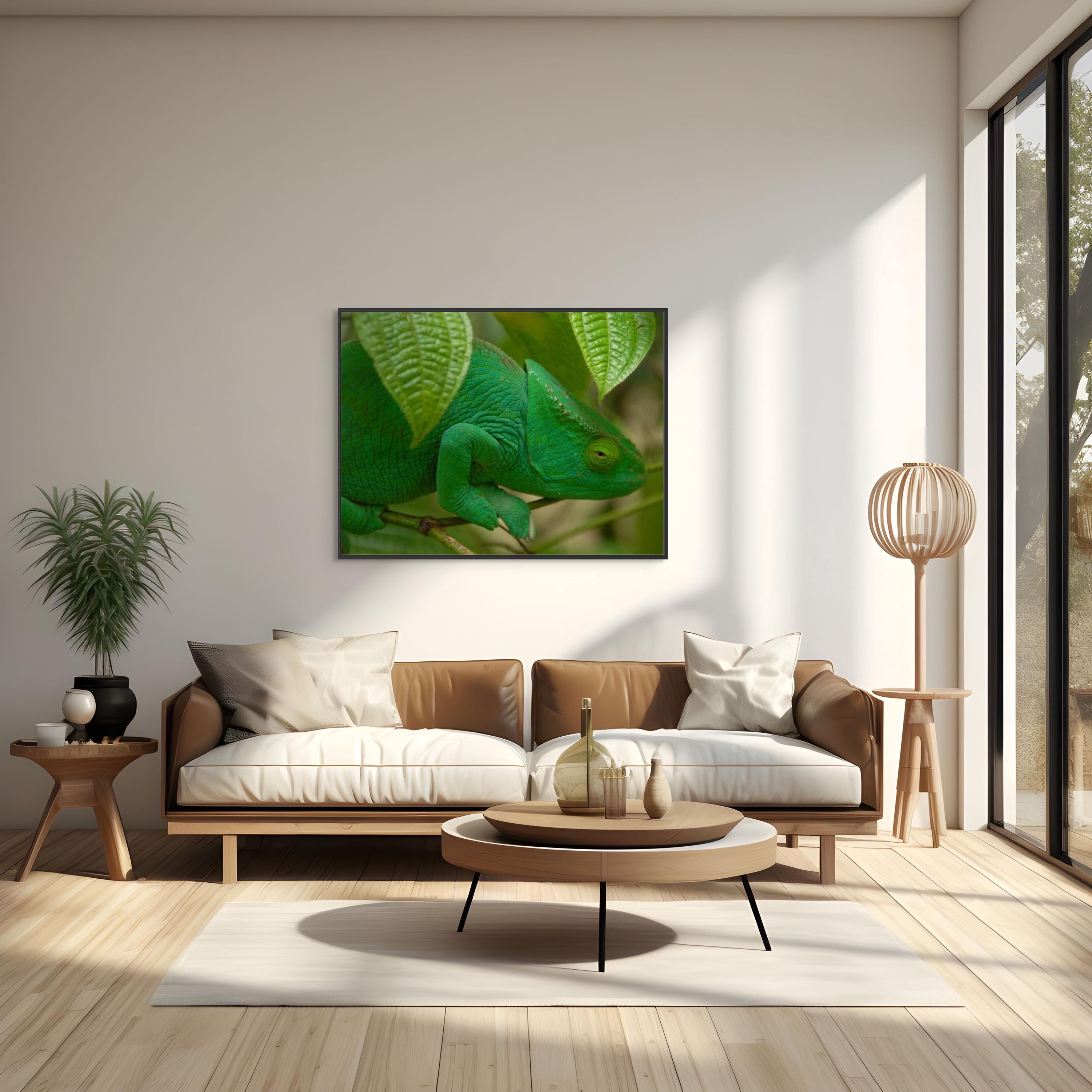 A striking close-up photograph of a Madagascar chameleon, captured in natural light and reproduced as a high-quality wall art print.