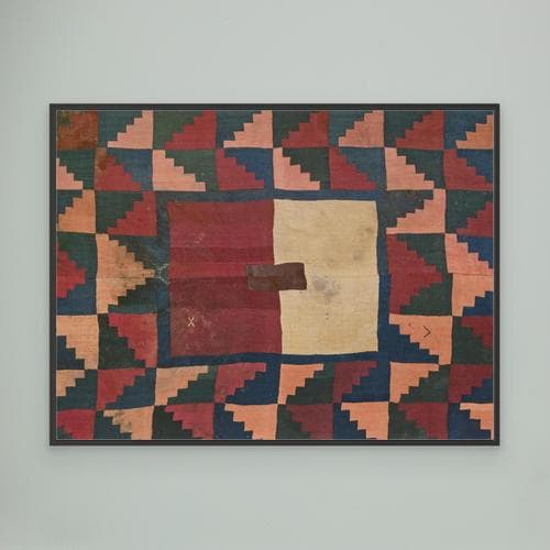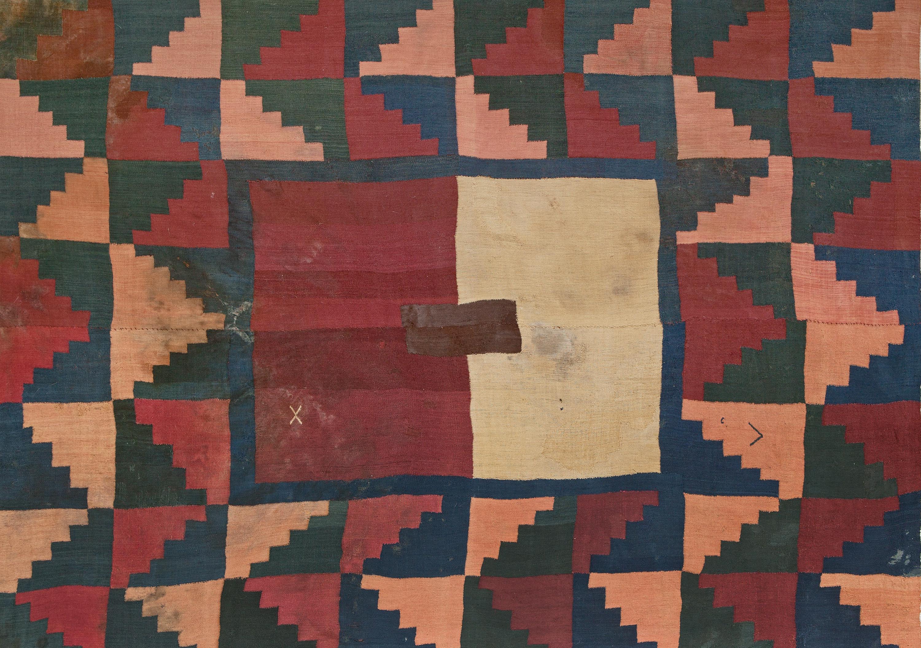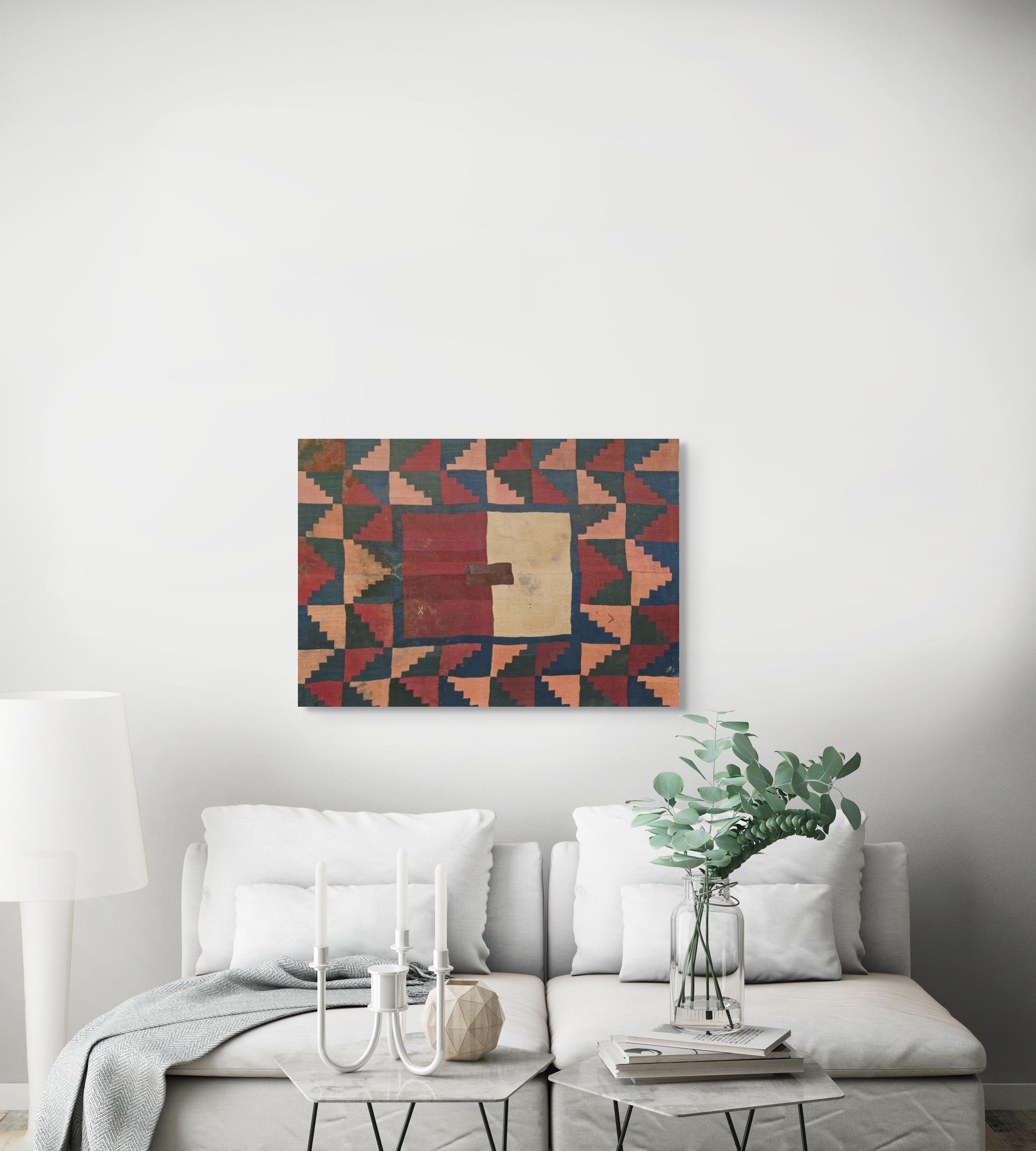 Ancient Nazca textile from Peru, featuring striking geometric patterns typical of pre-Columbian Andean craftsmanship. This artwork captures the texture and rhythm of an archaeological museum piece, transforming a fragment of cultural heritage into a powerful decorative wall print. 32X24"
