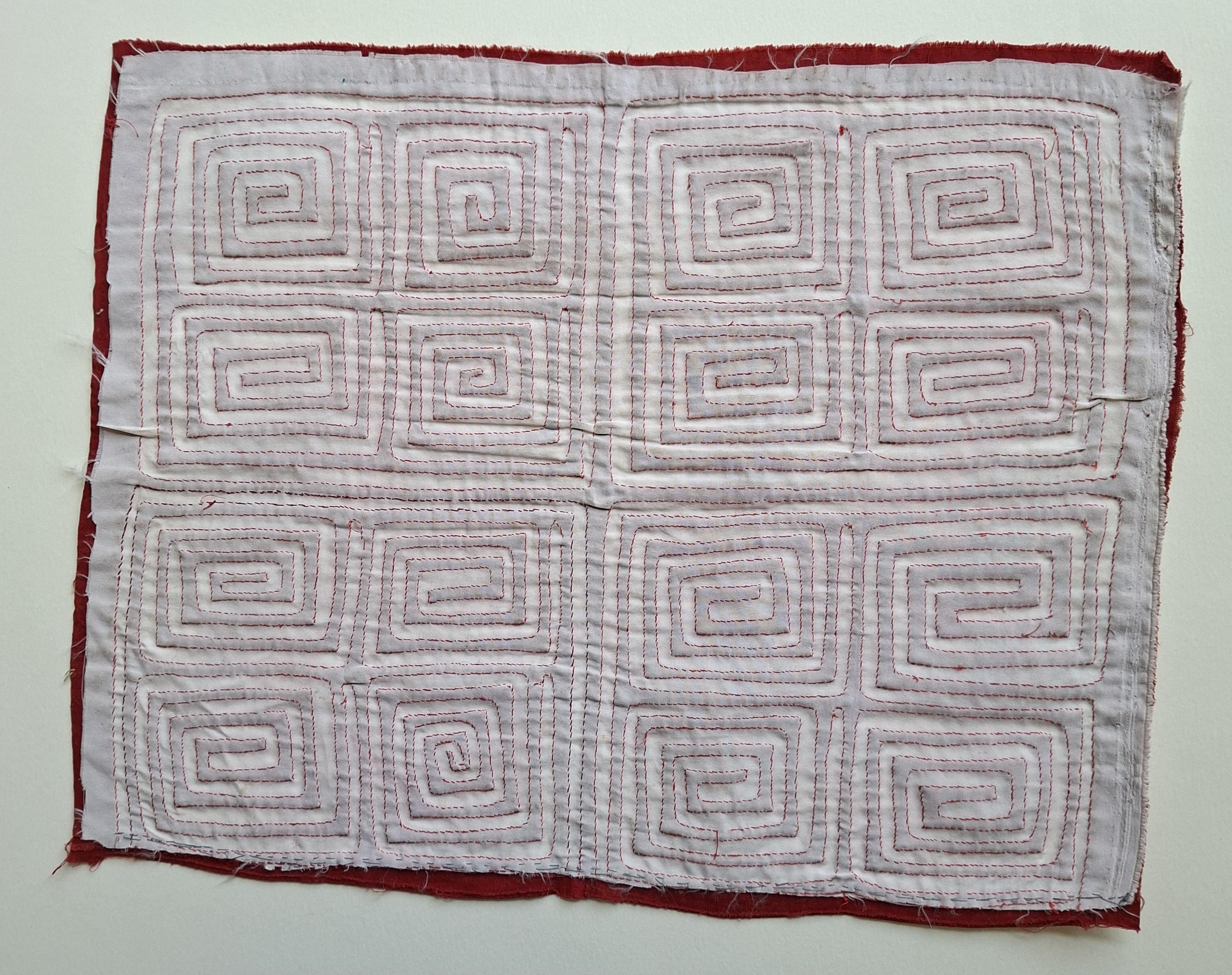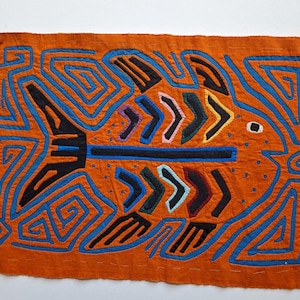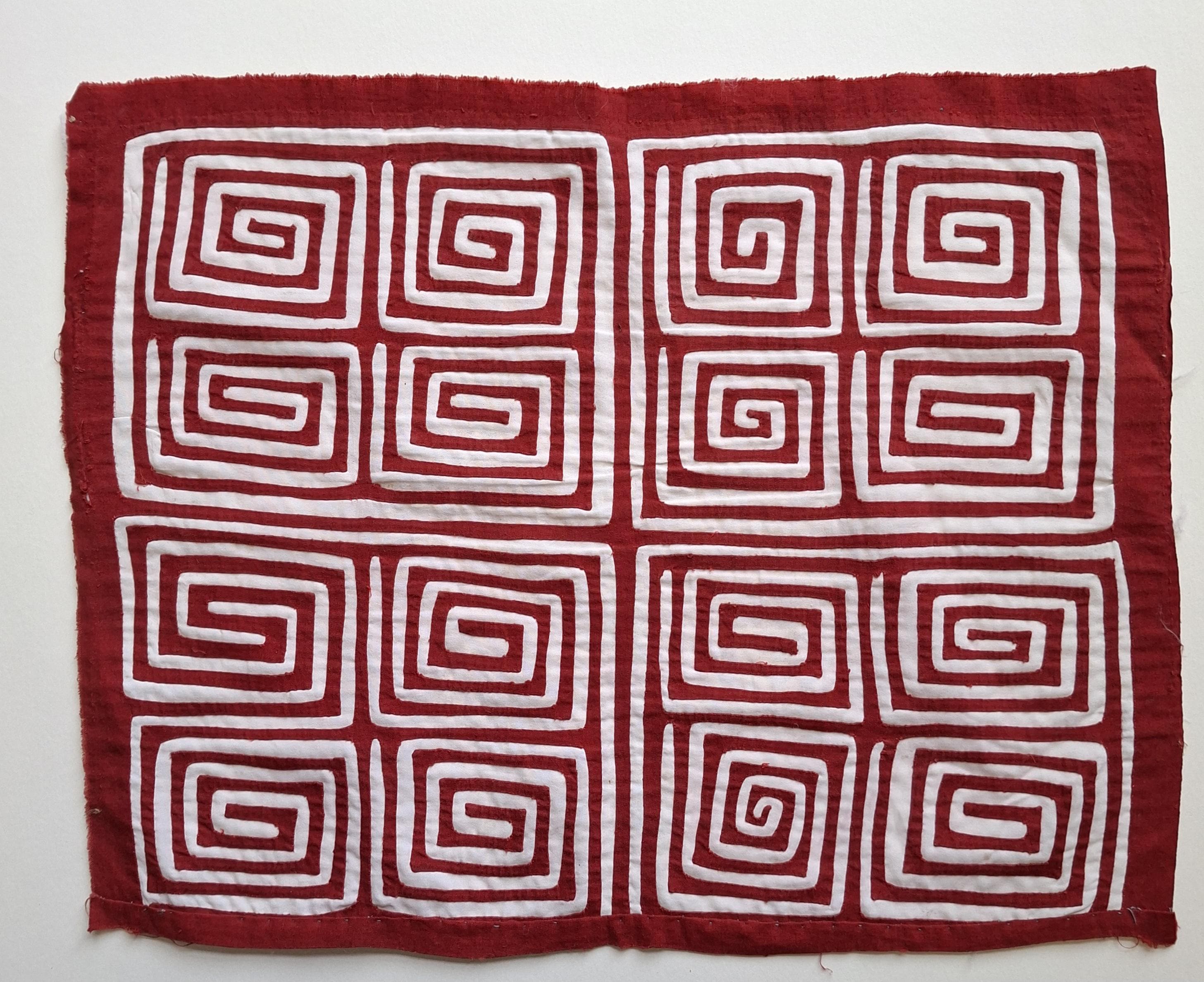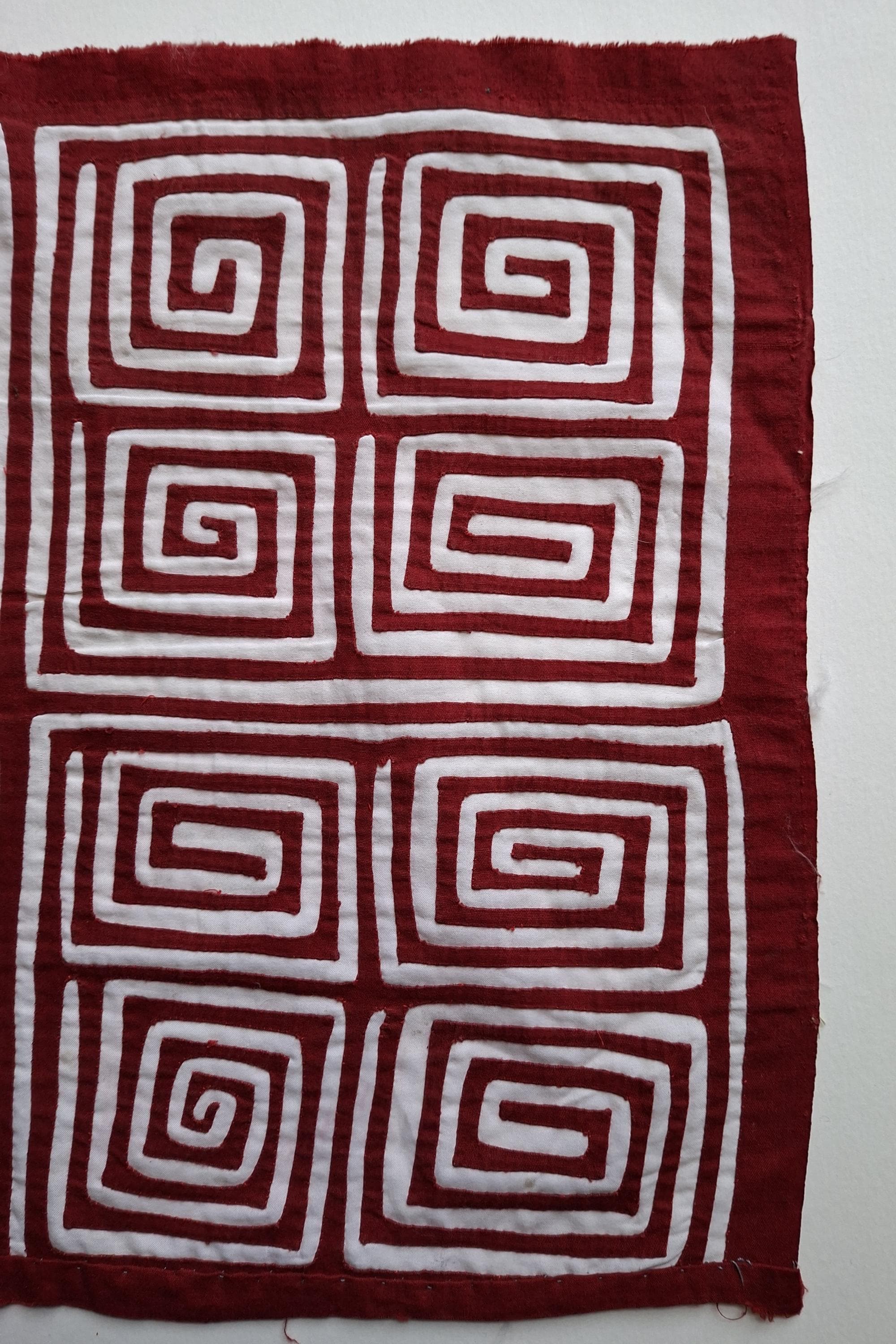 One of five curated mola textile panels from a small private collection. Each piece shows the beautiful geometric reverse appliqué technique of the Kuna / Guna people of Panama. Perfect for framing or for a gallery wall