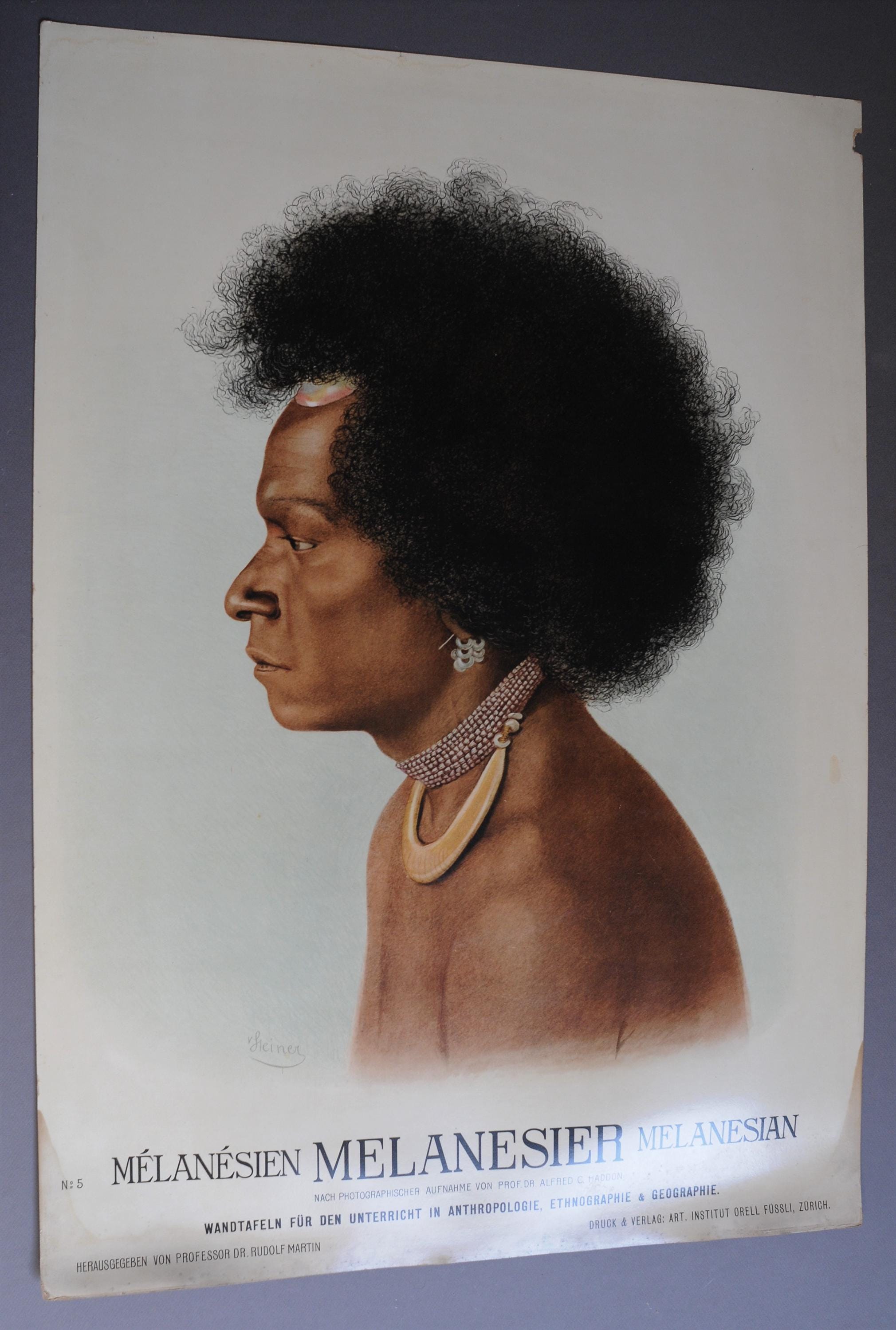 These large educational plates were produced for the teaching of anthropology, ethnography and geography. They were used in classrooms and universities and illustrate the scientific view of human diversity at the time.