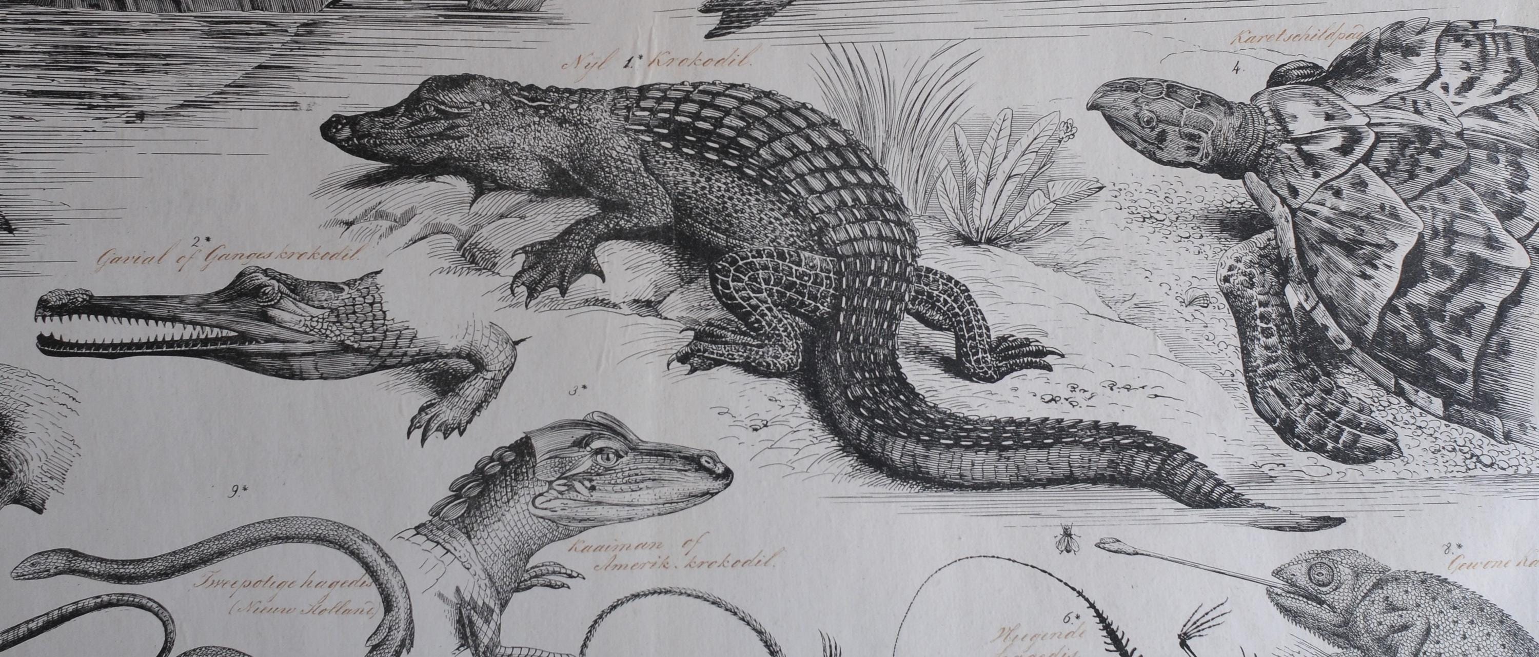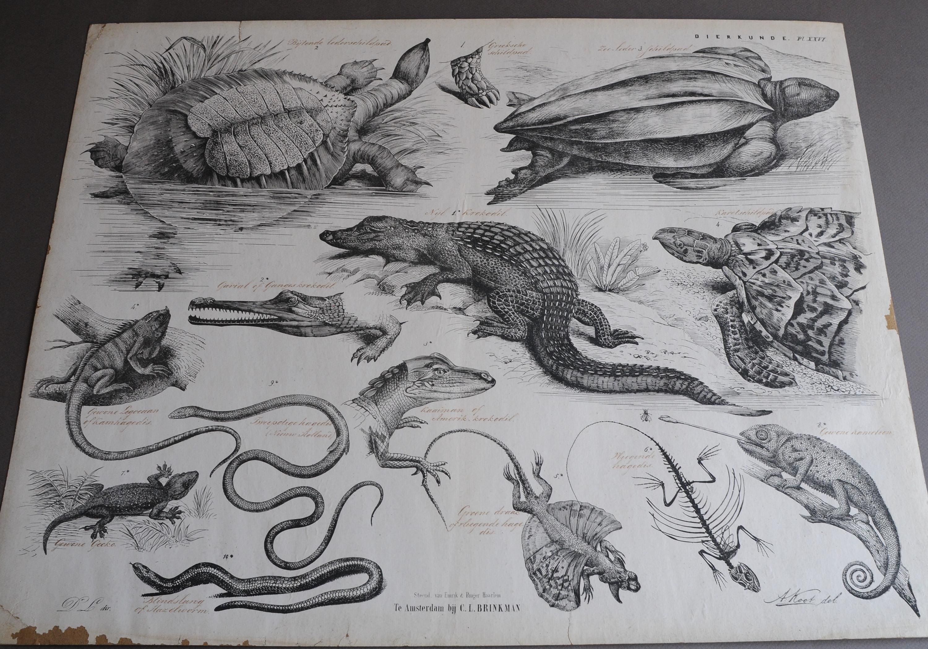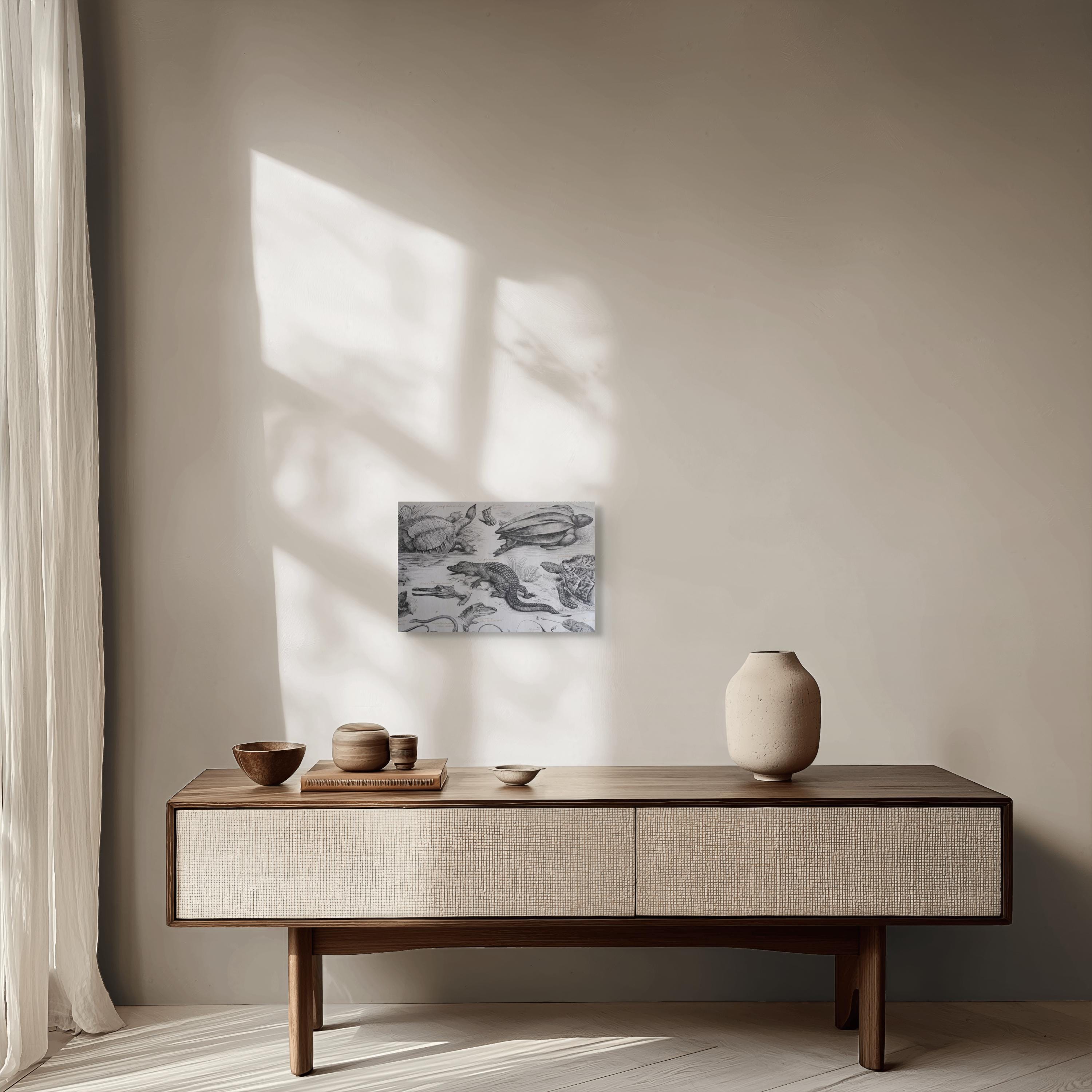 A beautifully detailed vintage zoology chart featuring turtles, originally created in the 19th century. This scientific illustration captures the elegance and precision of early natural history studies, making it a timeless piece for any interior. Combine with other natural history prints.